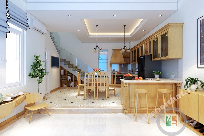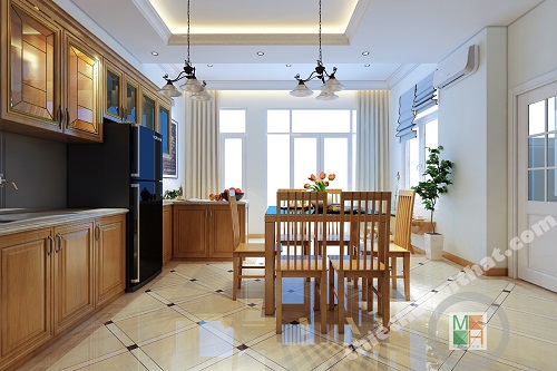 Tủ bếp gỗ sồi tự nhiên Nga căn hộ tại Đồng Nai