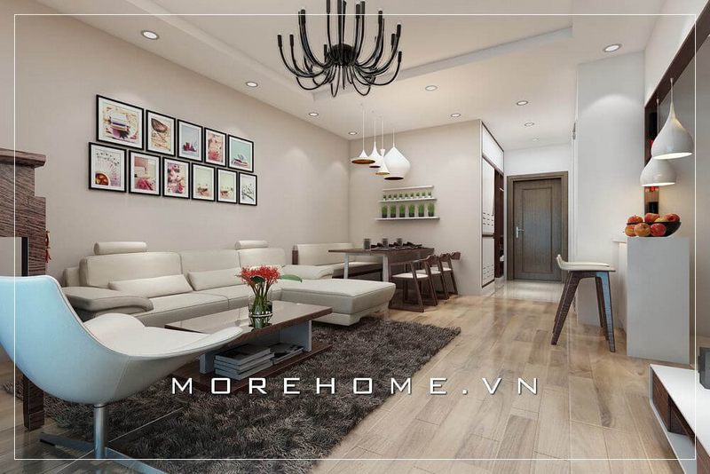 Ý tưởng thiết kế nội thất phòng khách chung cư sử dụng tone màu trắng chủ đạo, đang là một lựa chọn được nhiều khách hàng quan tâm