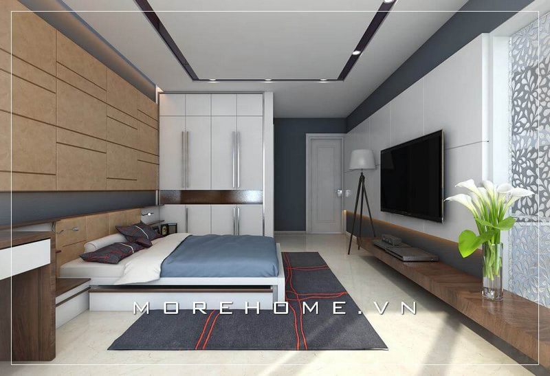 Nội thất phòng ngủ chung cư hiện đại với sự kết hợp hài hòa về màu sắc mang lại không gian nghỉ ngơi đầy sang trọng, tiện nghi và trang nhã