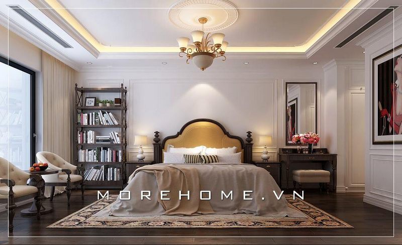 Bố trí nội thất phòng ngủ hợp lí mang lại cảm giác sang trọng mà không kém phần thoải mái cho chủ nhân căn phòng